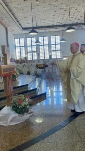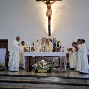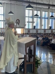 DISPONIBILIDADE PLENA – “José não pede explicações, não busca confirmação, ele obedece ao misterioso plano divino e leva Jesus ao Egito. Maria não profere palavras. Ela acompanha seu Filho em sua precariedade, compartilha seu exílio, aceita uma vida marcada pelo medo e pela pobreza. Ela continua a crer que Deus está agindo. Seu serviço é humilde porque não busca visibilidade; é silencioso porque se apoia no Espírito e não em palavras. O testemunho de Maria ilumina a missão de tantas mães, mulheres e fiéis que evangelizam através do cuidado, da paciência e da capacidade de sofrer sem perder a esperança. Maria nos ensina que o mundo também é salvo pelo amor oculto, o amor que não vira manchete, mas sustenta a vida”, pregou.