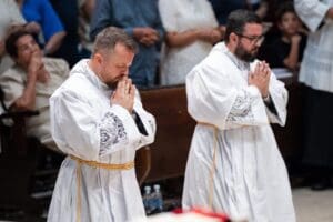 “Eu, porém, estou no meio de vós como aquele que serve” (Lc 22), é o lema de ordenação diaconal escolhido pelo Diác. Jefferson Soares Garcia, acompanhado na celebração pela sua mãe Claudia Regina, seu pai Silvio e seu irmão Matheus. Já o Diác. Márcio Lucas Rodrigues, escolheu como lema de ordenação: “Quero ofertar-vos o meu sacrifício, de coração e com muita alegria” (Sl 53), também foi prestigiado por seus familiares; a mãe Eustáquia, o pai Antônio e seus irmãos Wagner, Wélisson e Ir. Charbel (monge trapista).