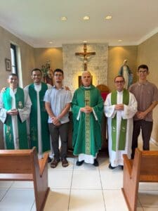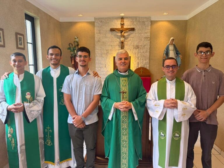 Nesta sexta-feira, dia 13 de fevereiro, foi celebrada a Missa de abertura do ano letivo do seminário propedêutico São José. Ingressaram no processo formativo os jovens Moisés Gianasi Mendes (18 anos ) e Miguel Ramos Bertachine (17 anos). A missa foi presidida pelo bispo diocesano, Dom Maurício Jardim, e concelebrada pelo P. Rafael, reitor do propedêutico e P. Arthur, novo reitor do seminário maior Jesus, Bom Pastor de Cuiabá. Também concelebrou a eucaristia o P. Thiago Silveira, vigário paroquial em Pedra Preta. Após foi servido almoço para os padres e seminaristas na cúria diocesana.